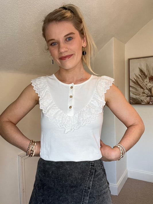 SaleWhite Ruffled Top