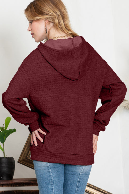 Gray Lattice Textured Kangaroo Pocket Drawstring Hoodie