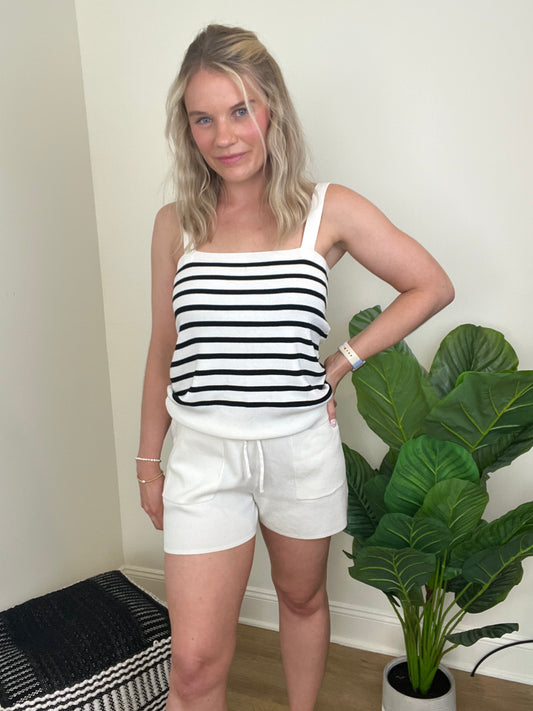 Phalaenopsis Ribbed Textured Knit Loose Fit Tee and Shorts Set
